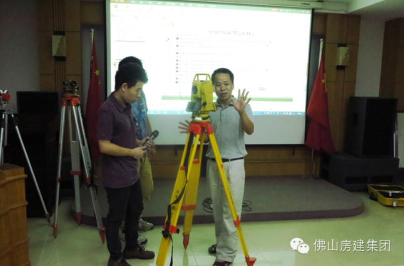 在课程讲授完后,杨竣宇的实际演练全站仪的对中和整平,冯健灿用CAD通俗的讲解了全站仪测量的方法,总工程师欧阳政的经验示范教学和学员们的实际操作。通过教学互动,整个课程气氛活跃生动,同时,《工程测量》的课程起到了学用一致的效果。