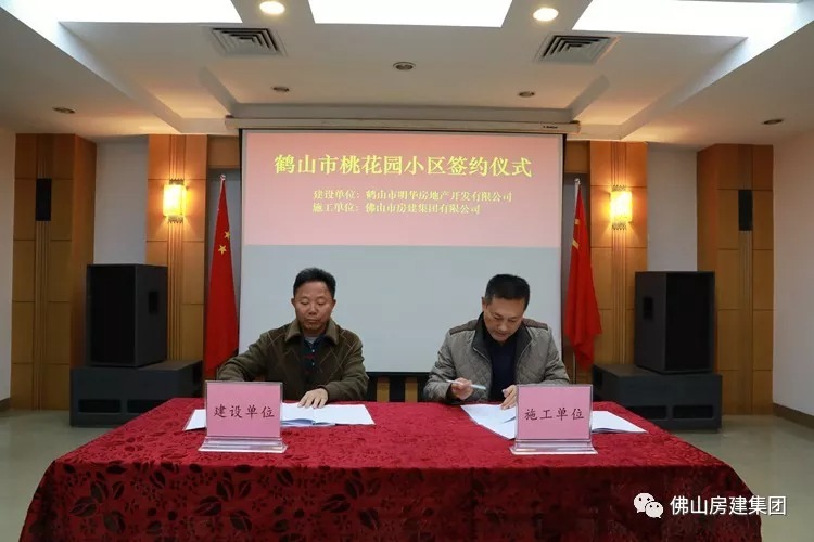 12月11日,鹤山市桃花园小区签约仪式在j9国际会议室举行,j9国际董事长颜琦、总经理何景辉、明华房地产董事长麦志明等同志出席仪式。
