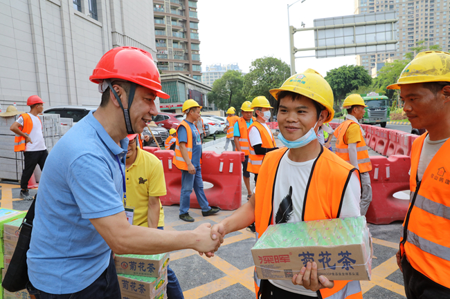 活动中,公司党委委员曾志伟副董事长代表公司党委向高温下辛勤工作的一线施工人员表示衷心的感谢和亲切的慰问,对一线人员不畏酷暑、守岗敬业的精神给予了肯定,并再三叮嘱他们在坚守岗位的同时,既要做好本职工作,也要注意身体。